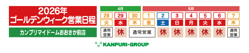 カンプリマイドームおおさか前店はカレンダー通りに営業しております!
