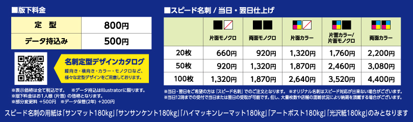 名刺をスキャンして印刷することもできます(※版下料金 片面1000円かかります)