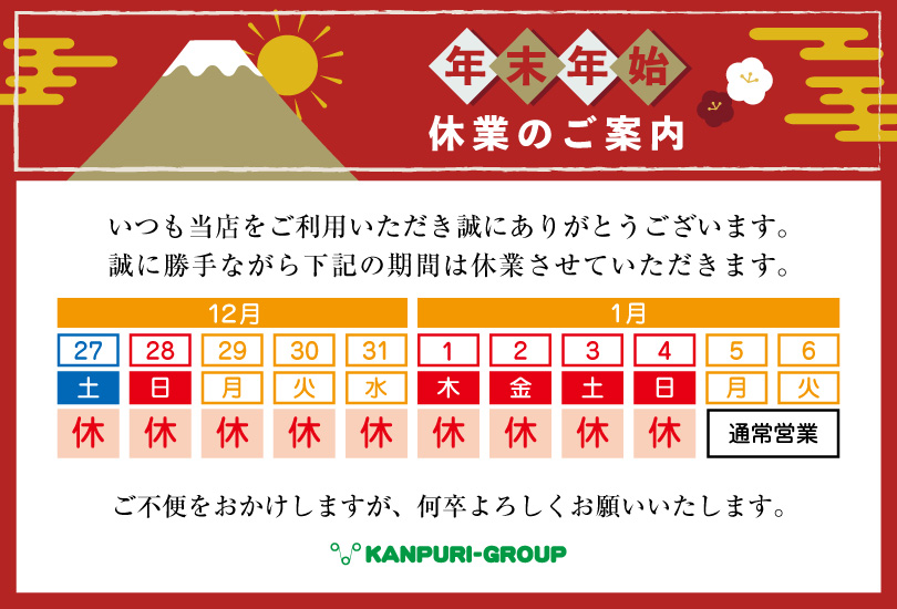 カンプリ他店の年末年始の休業期間は下記よりご確認いただけます。