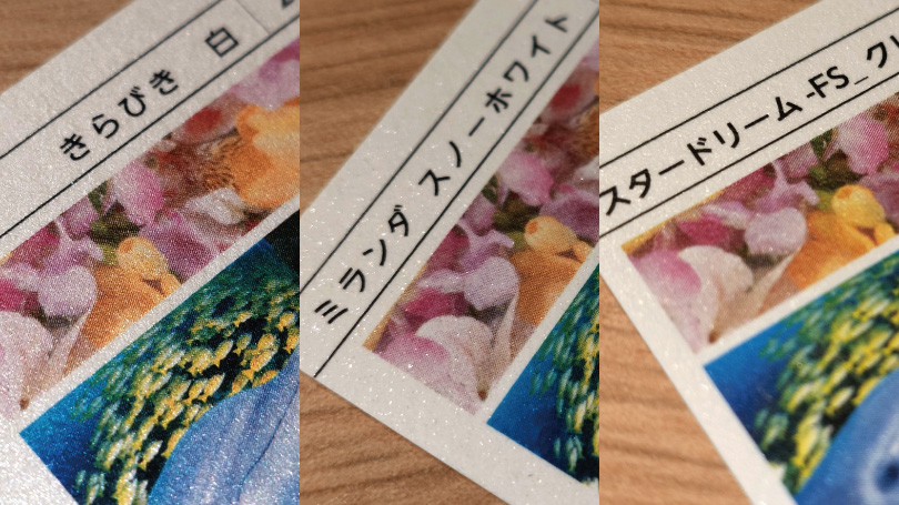 またキラキラ光る用紙もそれぞれキラキラ感が違ってきます。