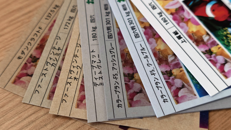 店舗ではサンプルをご用意していますので、見てお選びいただけますが、